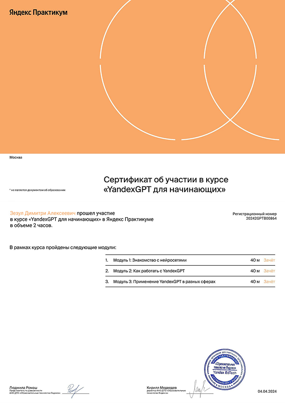 | Как получить максимум пользы от нейросетей Я помогу вам раскрыть потенциал ChatGPT, MidJourney, DeepSeek и других платформ. Моя экспертиза в Prompt Engineering позволит создать эффективные подсказки для генерации текста и изображений, а также оптимизировать модели ИИ для анализа данных и автоматизации процессов. |